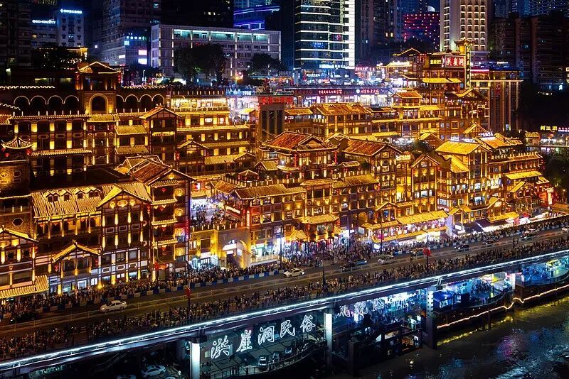 洪崖洞本身依山而建、层层叠落的建筑群在夜色灯火中仿佛一座悬空的幻境。这样的独特风貌,不仅赋予“云中城”鲜明的视觉质感,也让观众在银幕之外更能感受到重庆立体而奇幻的城市魅力。