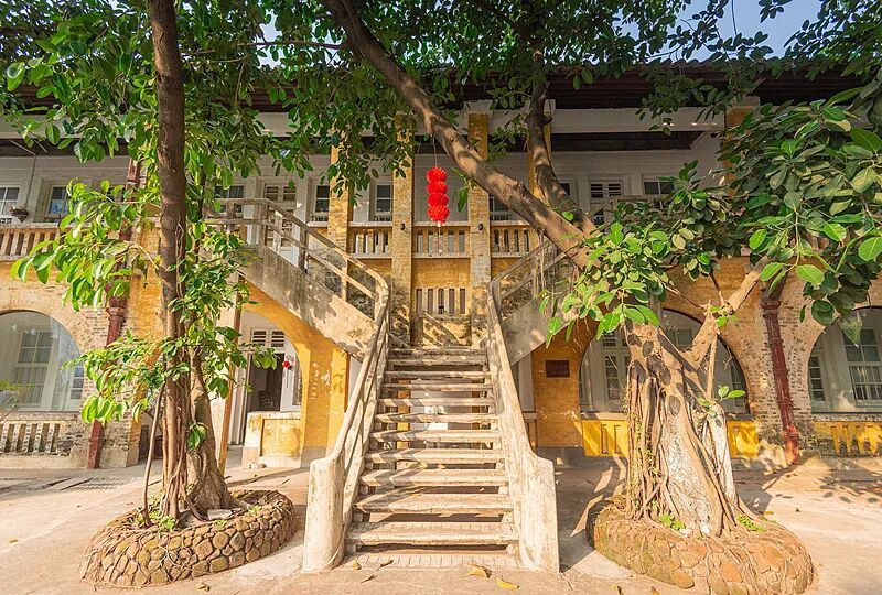 园区内的“Y字型”楼梯、黄色墙身与拱券式走廊,构成极具空间感的景观,也让这里成为游客们必到的打卡点。