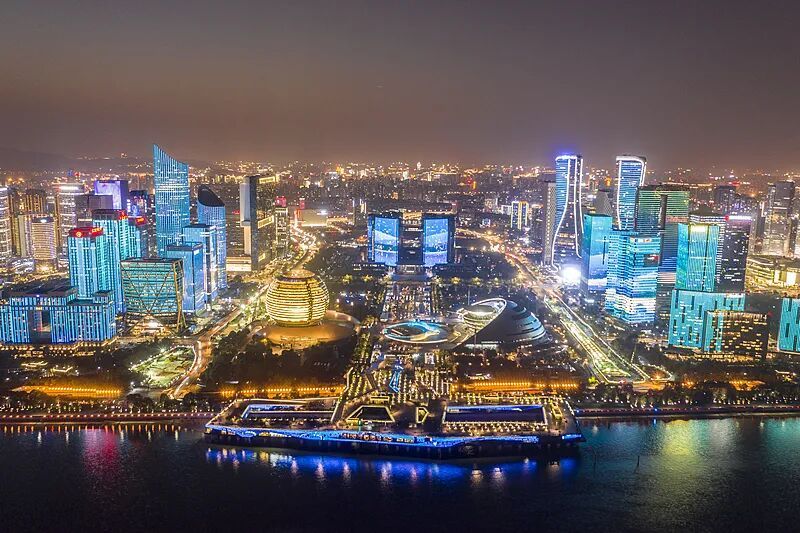 作为钱江新城的重要地标,杭州大剧院尤其适合夜游,灯光秀与喷泉交织,勾勒出一幅梦幻的“夜杭州”。