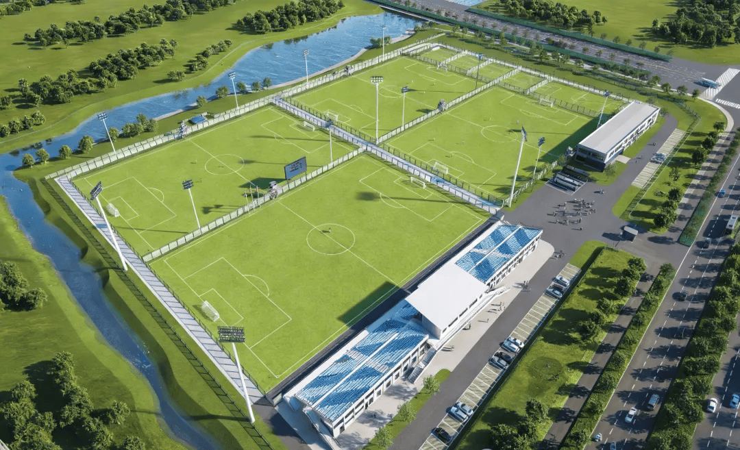 场地规划与建设上,基地的专业性与实用性兼备,拟新建多规格、多类型的足球运动场地:4 片 11 人制天然草皮足球场、1 片 7 人制人造草坪足球场、4 片 5 人制人造草坪足球场,其中 1 片 5 人制场地为守门员人造草坪专业训练场,可满足专业训练、赛事举办、青训培养等不同层次的足球运动需求。