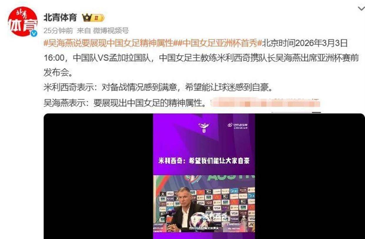 队长吴海燕则代表全队表达了决心。 她坦言这可能是自己职业生涯的最后一届亚洲杯,她希望和队友们一起,在赛场上展现出中国女足永不放弃的精神属性,将“铿锵玫瑰”的旗帜传承下去。 这份决心,对于一支正处于转型期的球队来说,显得尤为重要。
