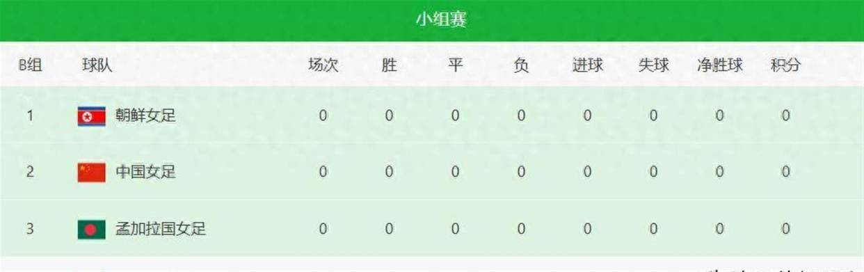 中国女足在B组的小组赛赛程已经全部确定。 除了3月3日下午4点对阵孟加拉国外,她们还将在3月6日下午4点迎战乌兹别克斯坦女足,最后在3月9日下午5点与小组中最强的对手朝鲜女足交锋。 与朝鲜队的比赛,将很大程度上决定中国女足以小组第几名的身份出线,从而影响淘汰赛阶段的对手选择。